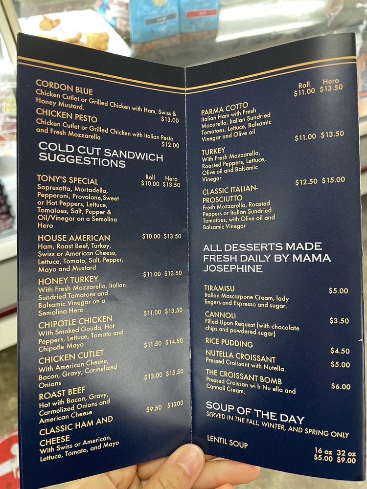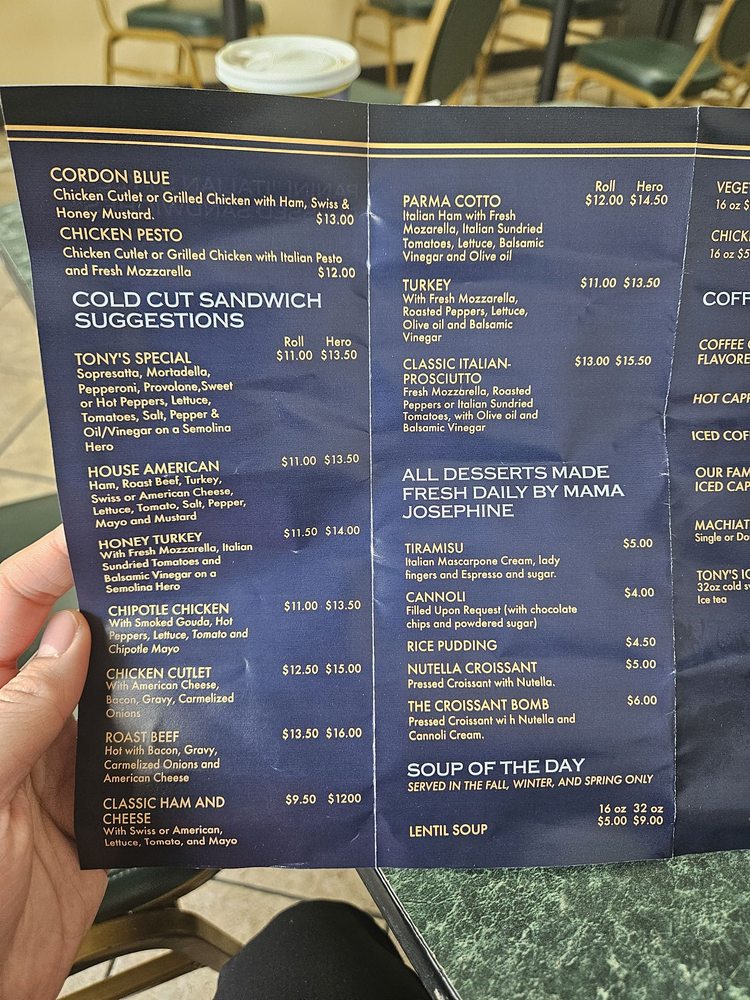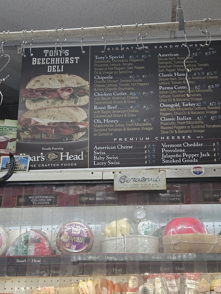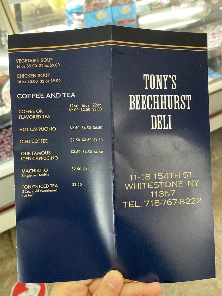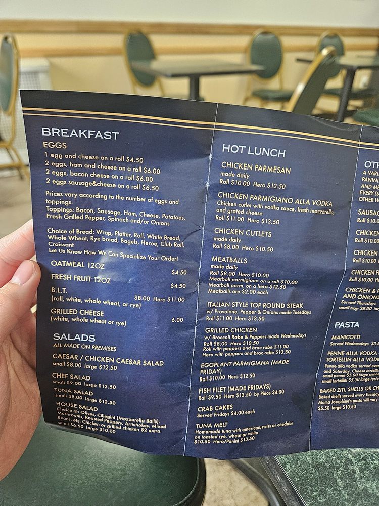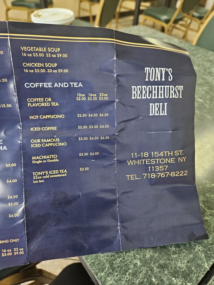 Introducing the menu at Tony's Beechhurst Deli, a neighborhood favorite spot in Whitestone, NY. The deli offers a variety of options for breakfast, salads, and hot lunches. From classic breakfast sandwiches like eggs with American cheese on a roll to specialty salads like Caesar and Tuna Salad, there is something for everyone. The hot lunch menu features homemade dishes like Chicken Parmesan, Chicken Cutlets, and Italian Style Top Round Steak. Customers rave about the friendly service and the delicious food, with standout items like the Penne a la Vodka and the Tony's Special sandwich. Don't miss out on trying their iced cappuccino and be sure to say hi to the welcoming staff. Tony's Beechhurst Deli sets the standard for customer service and satisfying meals.